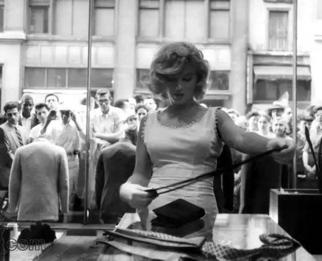 Мэрилин Монро пытaется ходить по магазинам, 1957 год.