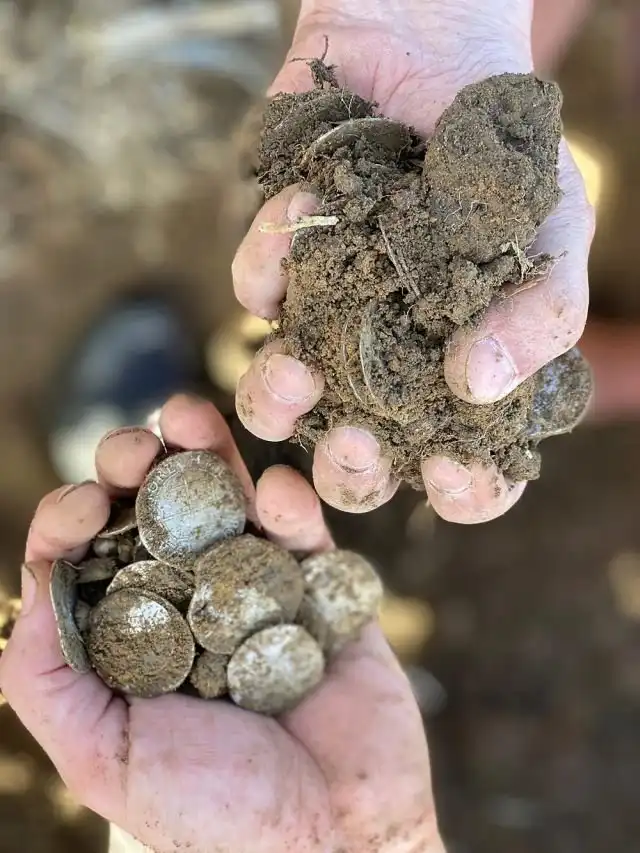 "Они были повсюду. После десяти минут поисков я услышал мощный сигнал и подумал: "Вот оно". Мы начали копать и увидели горшок. Ощущение, когда выскребаешь грязь и видишь монеты, неописуемо", - рассказал британец.
