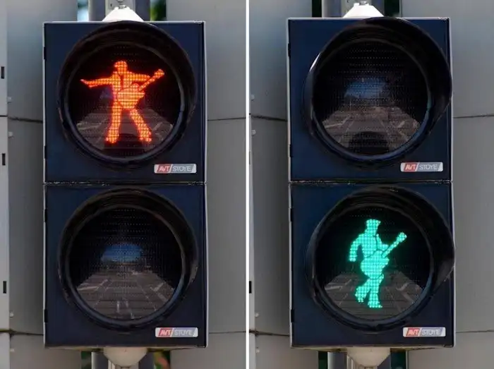 18. В немецком городе Фридберге, где когда-то проходил военную службу Элвис Пресли, в память об этом стоят вот такие художественные светофоры