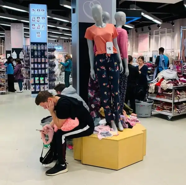 Мучительное ожидание мужчин на шопинге