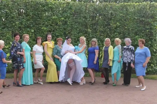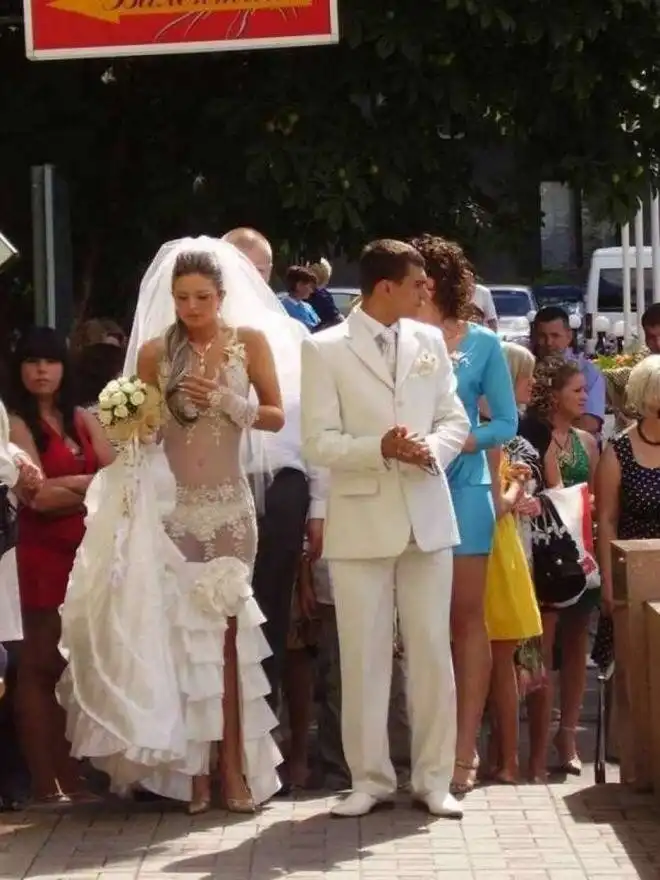 Свадьба это то мероприятие, где всем надо показать, что у вас есть. чем вы владеете, насколько вы счастливы, богаты, удачливы. и конечно же не обойтись без особых нарядов, поз, и выставки частей тела, которыми можно гордиться...