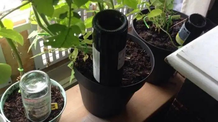 Чтобы ваши цветы не погибли, когда вы отправляетесь в путешествие. Воды в бутылках хватает на неделю
