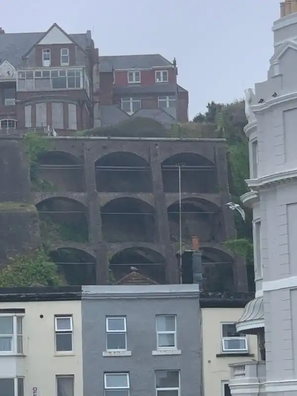 Ответ: Это подпорная стена для холма, чтобы со временем дома сверху не начали съезжать вниз. А арки делаются в том случае, если стена получается достаточно крепкой и без полного заполнения, таким образом экономят материалы.