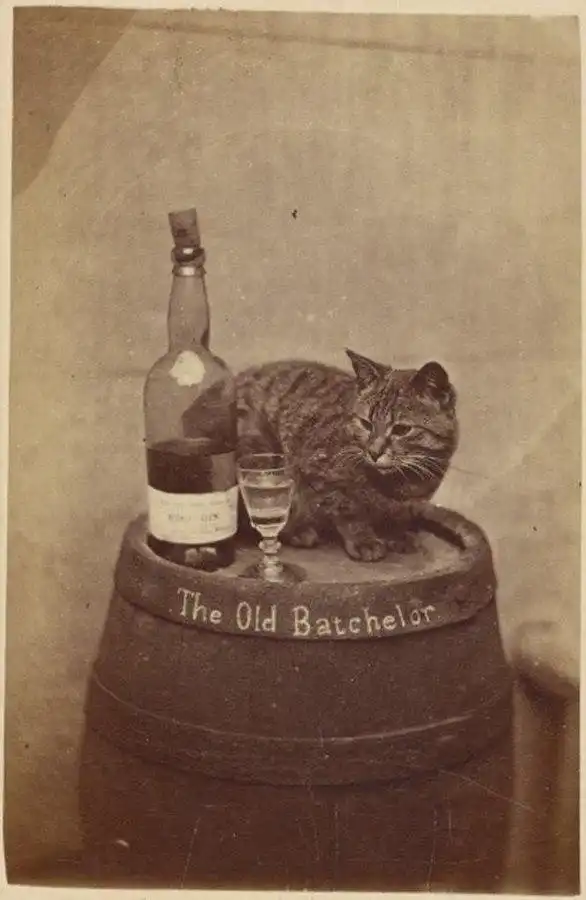 Пол бутылки джина «Старый холостяк» и котейка. А что еще нужно то? Великобритания, 1890-е.