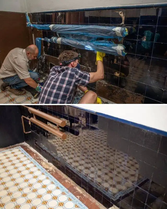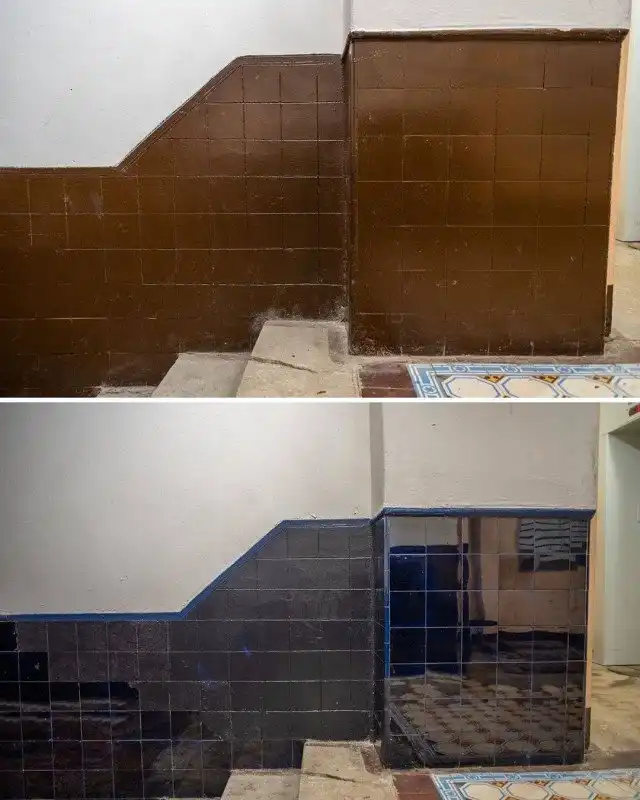 Краеведы объединения «Гэнгъ» очистили плитку в парадной дома на улице Ленина. На работы ушло три дня, керамика сложного сине-черного цвета поддавалась тяжело — из-за зеркальной глазури недочеты были особенно заметны. Посмотрите на итоги акции — и то, как изменилась парадная.