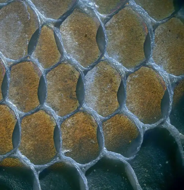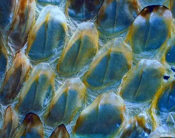2. Защитное плетение на шкуре ящерицы под микроскопом — натуральная кольчуга