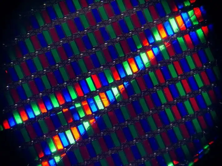 9. Разбитый экран смартфона под микроскопом