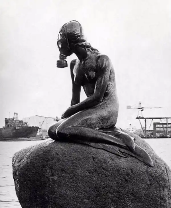 На памятник Русалочке надели противогаз во время протестов против загрязнения окружающей среды