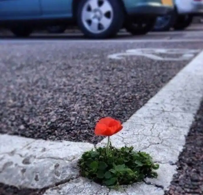 Асфальт и стены — это не преграды для природы. Деревья и трава всегда найдут себе место... лишь бы солнышко было.