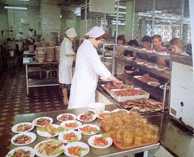 Советская столовая. Обед обходился в 50-70 копеек при средней зарплате 120 рублей. СССР. 1970-е.