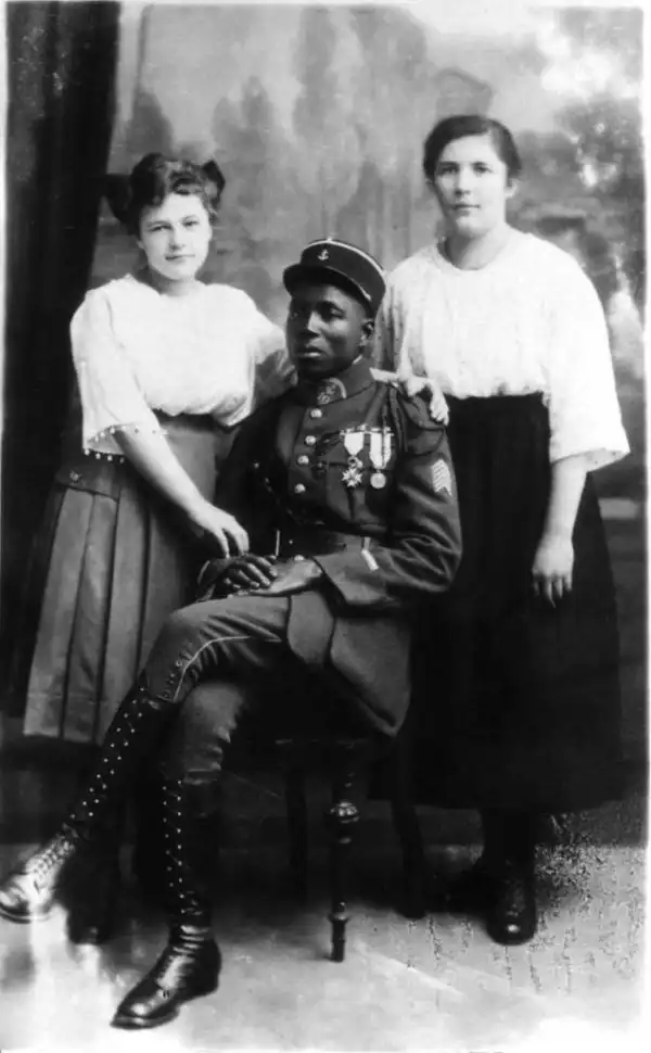 Французский морпех из колониальных войск в компании немецких фройляйн, 1920 год, Рейнская область
