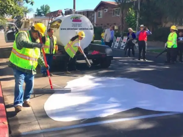 По сути, это не совсем краска – это специальное белое вещество, созданное на основе асфальта. Благодаря такому новшеству удалось охладить асфальт на пятнадцати улицах на пять градусов. Казалось бы – это совсем немного. Однако вместе с этим снизилась и температура зданий, которые примыкают к «окрашенным» улицам – а это уже более значительное достижение.