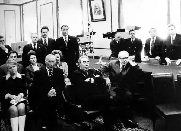 Брежнев и товарищи на просмотре новинок мирового и отечественного кинематографа, Москва, 1975 год.
