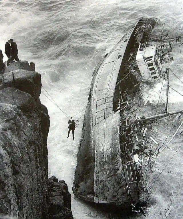 Эвакуация команды севшего на мель траулера, Англия, 1962 год.