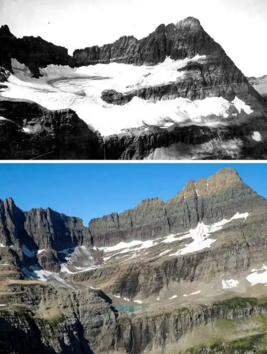 Ледник Шепард, США в 1913 и 2005 годах