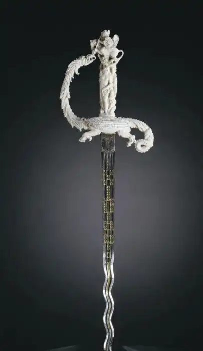 Меч из слоновой кости и стали. Нидерланды, вторая половина XVII века. Верхняя часть этого меча изображает спасение Андромеды Персеем.