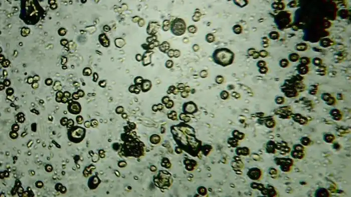Отчего же возникает этот удивительный эффект? Всё довольно просто. Если мы рассмотрим под микроскопом каплю обычной озёрной воды, выглядеть она будет так: