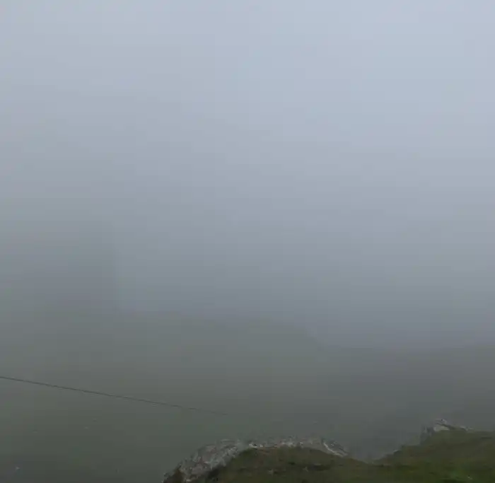 3 часа спускался пешком, и как только я сел в грузовик, чтобы уехать, выглянуло солнце, разогнавшее туман.