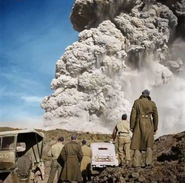 Солдаты 5-ой армии США наблюдают за извержением Везувия, 1944 г.