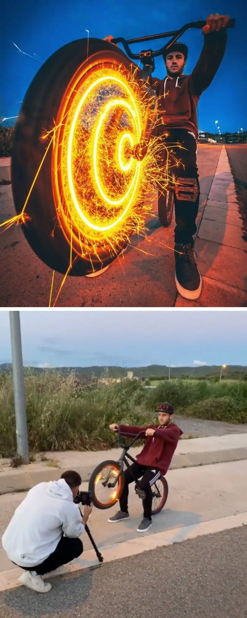 Фотограф из Барселоны Жорди Коалитик создает динамичные и нестандартные снимки, а потом делится с пользователями сети фотографиями того, что в это время происходит за кадром. На первой фотографии можно увидеть готовую работу, а на второй закулисье без прикрас.