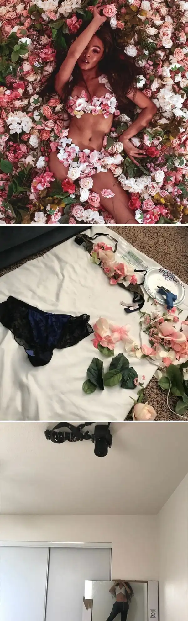Фотографии инста-модели Кимберли Дуглас в инстаграме кажутся произведением профессионального фотографа, сделанными в прекрасно оборудованной студии. На самом деле, Кимберли снимается в собственной гостиной и на заднем дворе, и самостоятельно готовит фон для каждого снимка из подручных материалов. Как можно сделать профессиональный студийный снимок своими руками в домашних условиях, она раскрывает в серии фотоиллюстраций.