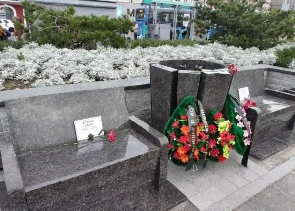 Жители Владивостока принесли траурные венки к скамейкам из гранита за 10 млн рублей