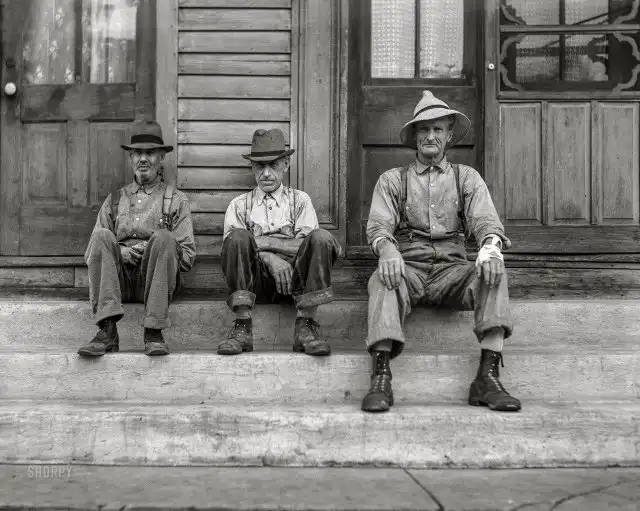 Фермеры на ступенях почтового отделения в Блэк Эрт, округ Дэйн, штат Висконсин. Август 1941 года.