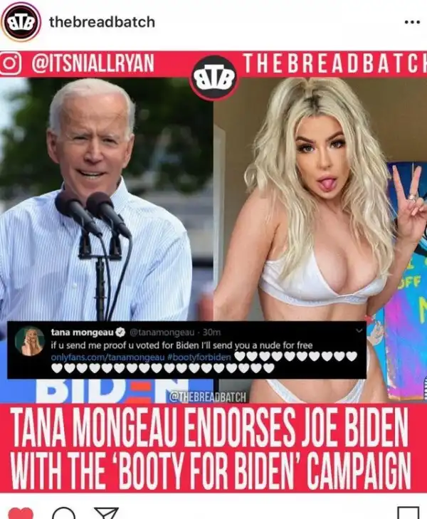 Голосуй за Джо Байдена и получишь откровенные фото блогера Тана Монжо