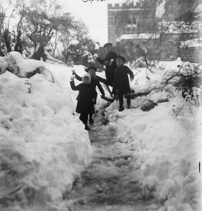 Крупная снежная буря прошлась по Иерусалиму 25 февраля 1921 года, попав на фотоснимки. Это крайне редкое зрелище здесь, где снег выпадает каждые три-четыре года. В то время, после Первой мировой войны, британцы одержали победу над османами на Ближнем Востоке.