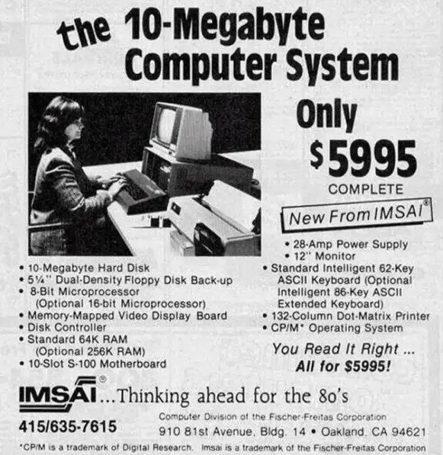 Компьютер с жёстким диском на 10 Мб всего за 5995 долларов, Окленд Калифорния. Реклама 1977 года.
