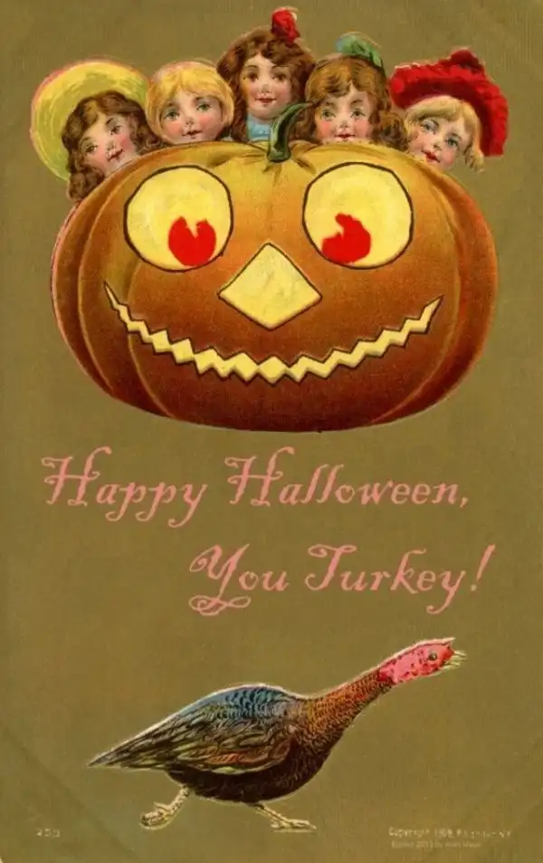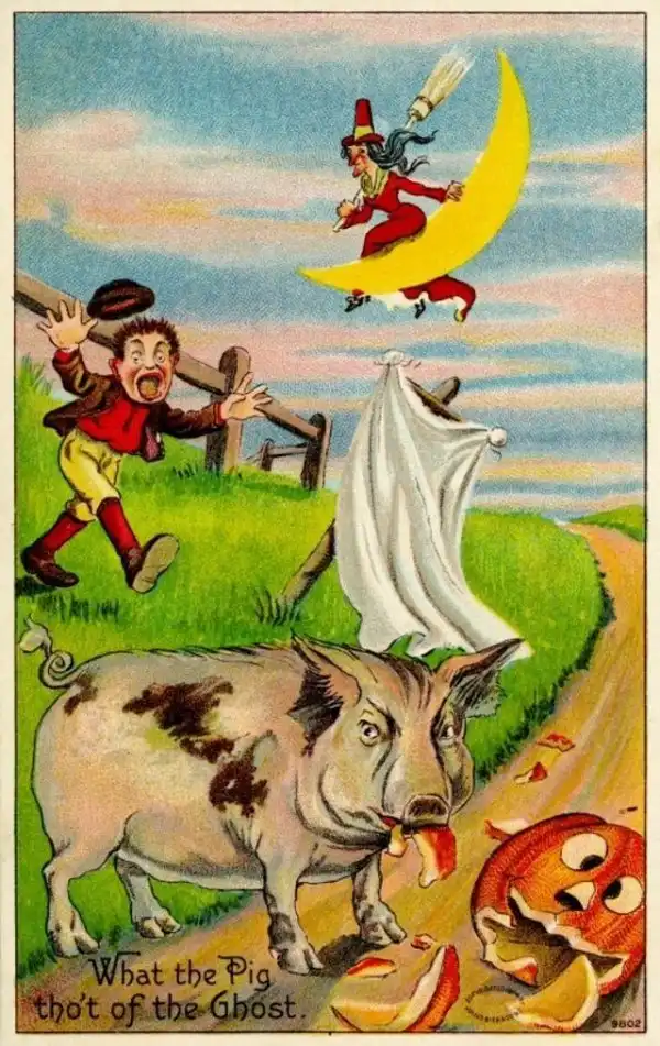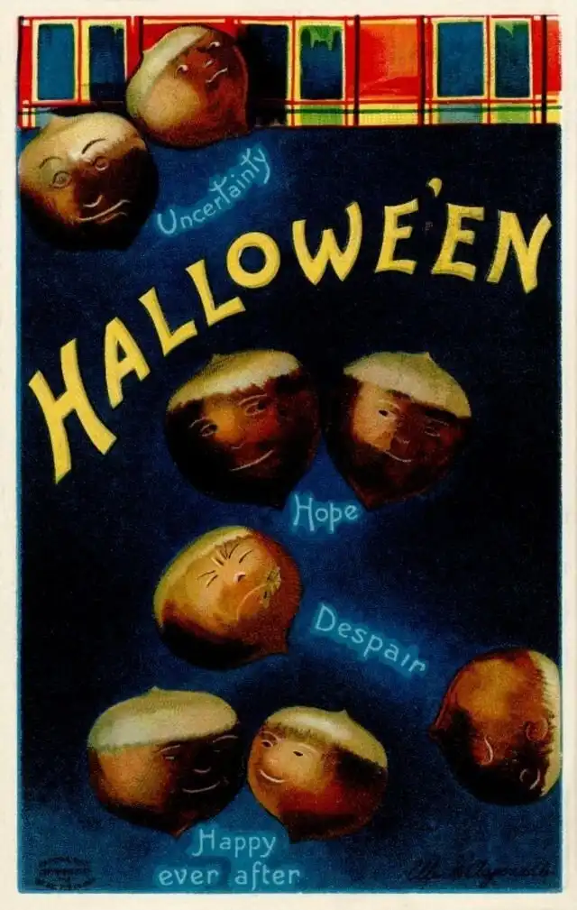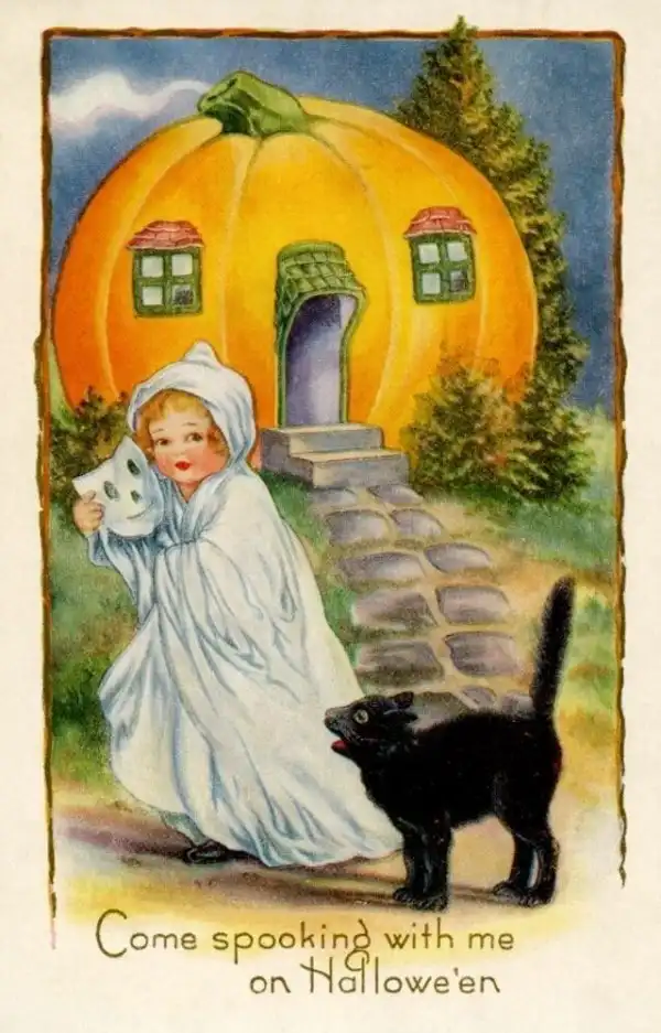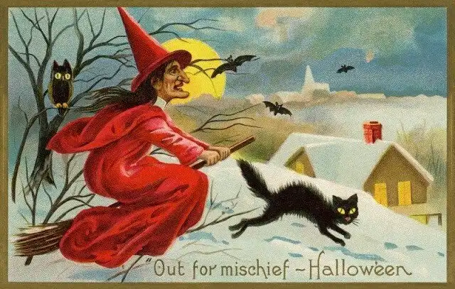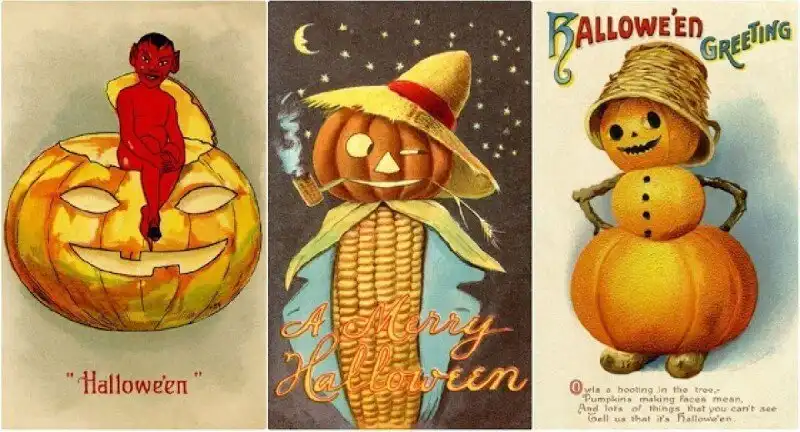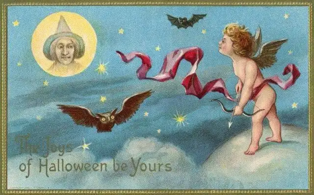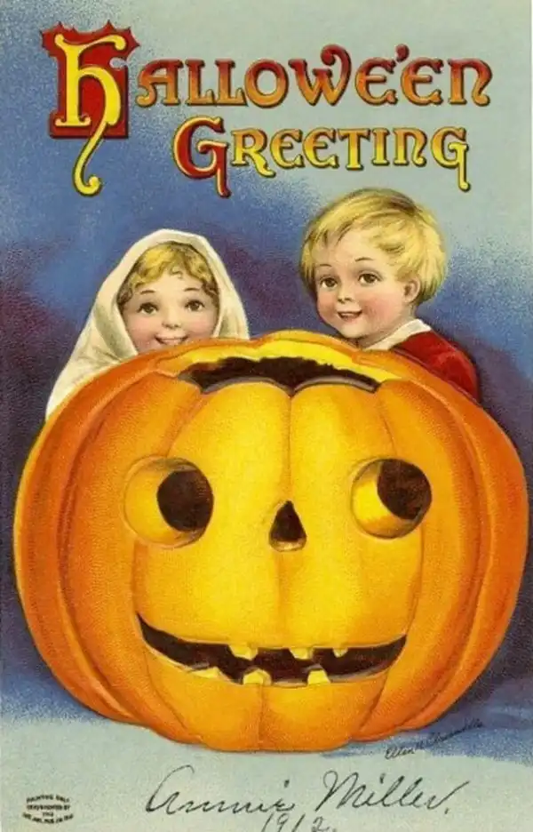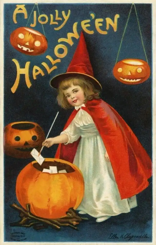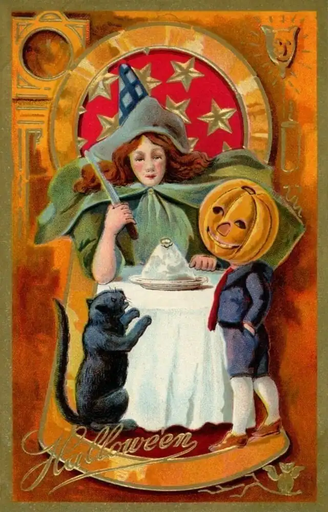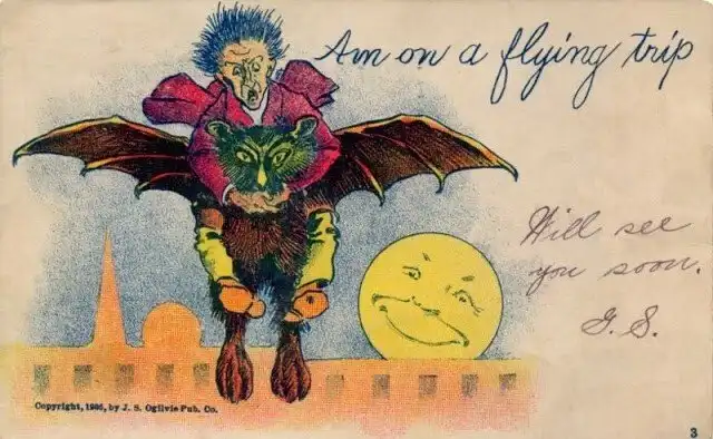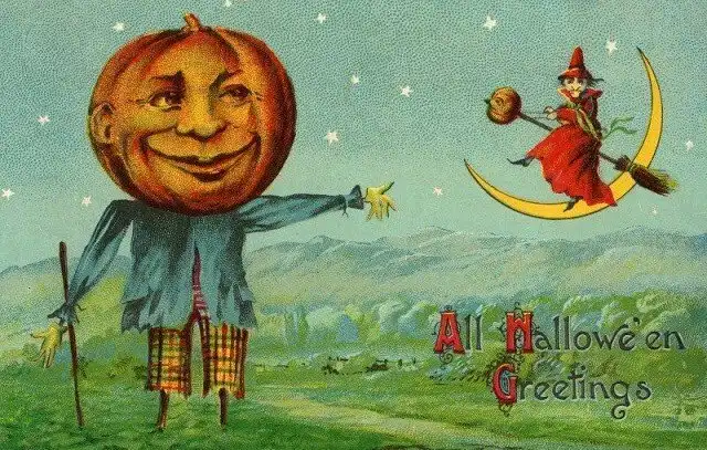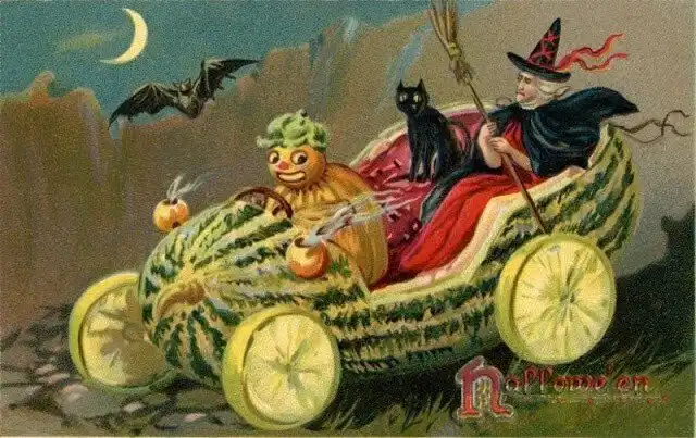 Поздравительные открытки на Хэллоуин начали появляться в США в 1890-х годах, а пик популярности пережили в начале 1900-х. Сегодня такого уже нигде не увидишь. Главный персонаж праздника - известный нам Джек-фонарь, но в некоторых случаях его заменяет ведьма на метле. Отличная коллекция!