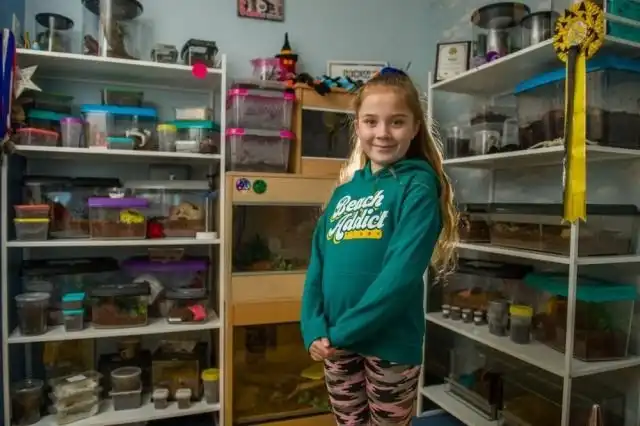 Холли Гринхал - 8 летняя натуралистка из Великобритании. Любительница насекомых наверняка бы подружилась с Николаем Дроздовым, так как ее комната - это настоящий заповедник, в котором живет множество... весьма жутких созданий. В спальне девочки можно увидеть полсотни тарантулов и прочих милых насекомых, как: многоножки, скорпионы, тараканы, кузнечики и улитки. А еще у малышки есть две змеи.