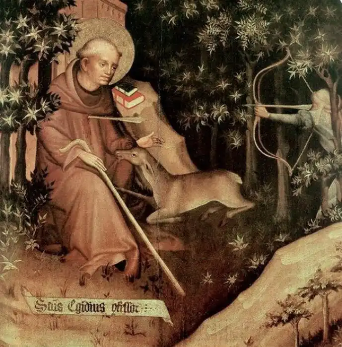 Жиль (Эгидий) - патрон калек, нищих и кузнецов, считался одним из четырнадцати эффективнейших святых заступников и специализировался на безумии, эпилепсии и бесовской одержимости.
