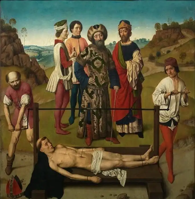 Эразм (Эльм) Антиохийский / Формийский покровитель моряков и тот, кто вылечит вас от кишечных болей всегда изображается с кабестаном - штырь с намотанным на него канатом. Некоторые ошибочно принимают их за кишки от пыток, перенесенных святым