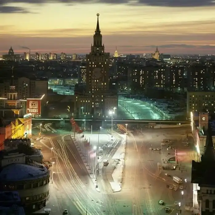 Район метро «Краснопресненская» с высотки на пл. Восстания в 1954 году, Москва