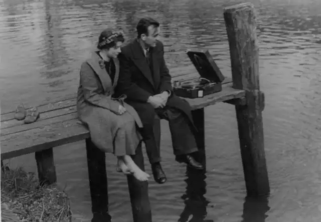 Пара слушает патефон на пирсе, Германия, 1935 год
