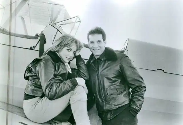 Стив Гуттенберг и Шэрон Стоун на съемках "Полицейской академии 4", США, 1987 год.