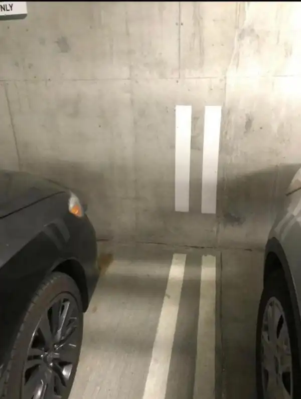 Разделительные линии продолжаются и на стене, чтобы вы могли увидеть, как припарковались.