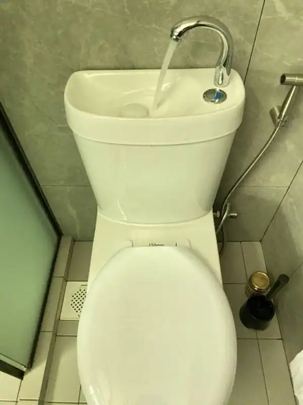 Над этим унитазом установлена раковина для экономии воды.