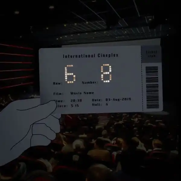 Билет в кино, на котором легко увидеть свое место в кинотеатре.
