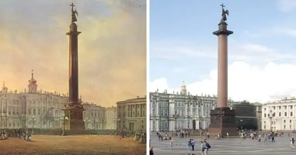 Дворцовая площадь, Санкт-Петербург (~1840 и 2014 годы)