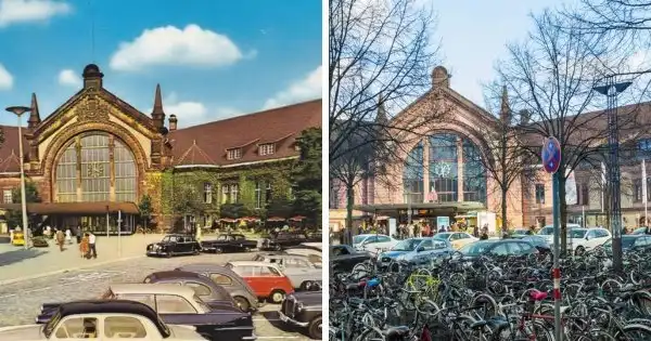 Вокзал в городе Оснабрюк, Германия (1965 и 2015 годы)