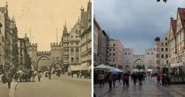 Карловы ворота, Мюнхен, Германия (1910 и 2017 годы)