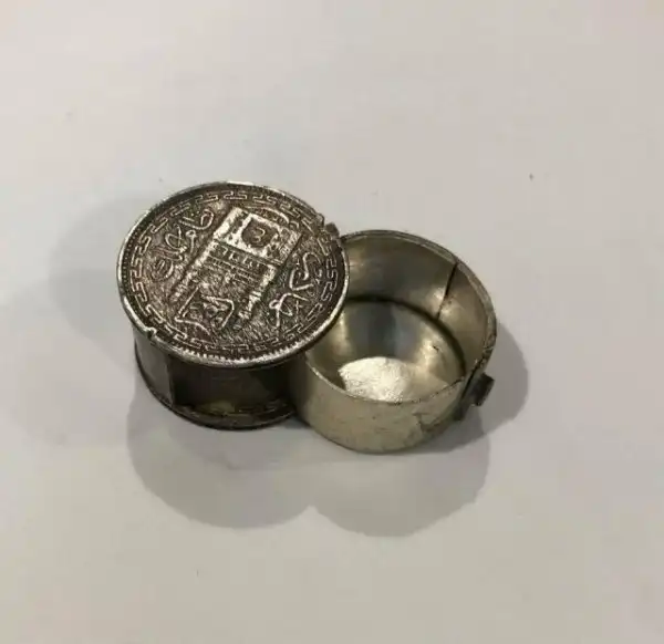Небольшая шкатулка, в которую люди складывают таблетки, сделанная из монет.