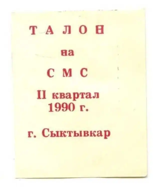 Талон на смс, СССР, 1990 год.