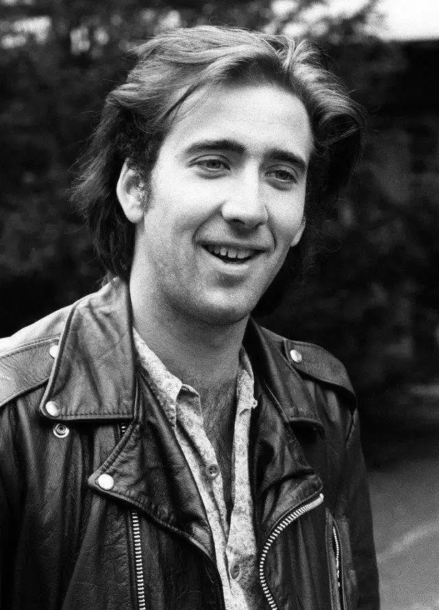 Николас Кейдж в модной кожаной куртке, 1987 год.
