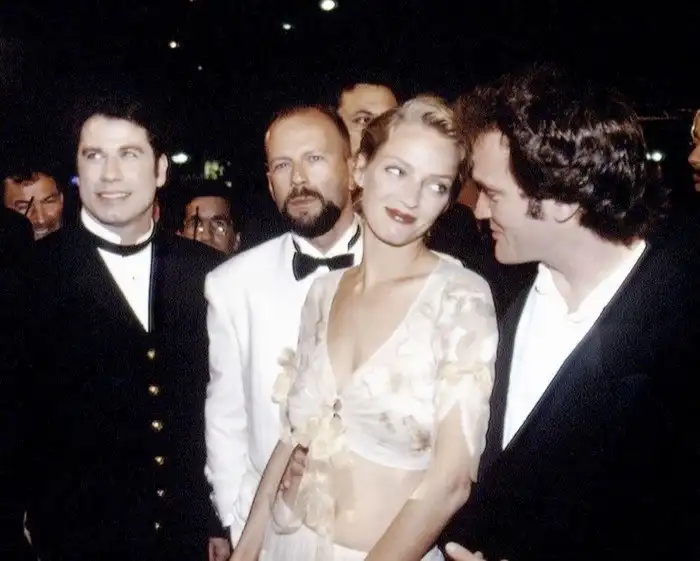 25. Келли Престон, Джон Траволта, Брюс Уиллис, Ума Турман и Квентин Тарантино на премьере фильма "Криминальное чтиво"