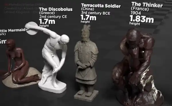 Автор проекта создал 3D-модели 29 самых известных статуй, которые создал человек за всю историю. К сожалению, некоторые из них не сохранились до наших дней. Модели статуй расположены в порядке увеличения размера - от "Писающего мальчика" до самой крупного монумента из ныне построенных. Давайте посмотрим.