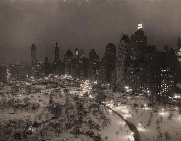 Цeнтральный пaрк зимней ночью. Нью-Йорк, 1930-е.