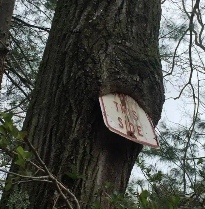 9. Смотрите, как дерево «поедает» этот знак и покрывает себя краской
